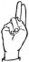 На ћирилици написано ЛУКА ДАБИЋ састоји се из 9 слова [?]. Исписано ћириличном једноручном азбуком за глувонеме: